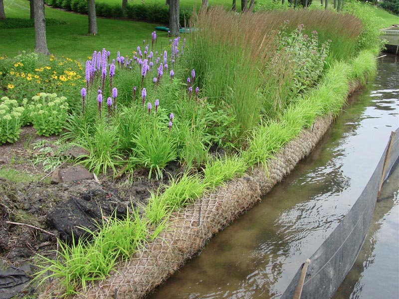 Coir logs are a natural fiber product made from densely packed mattress coir fibers placed inside a tubular coir twine netting, offering high strength and reinforcement. Both components are all-natural and biodegradable, making them safe for the surrounding environment.